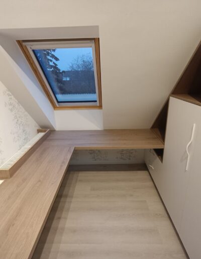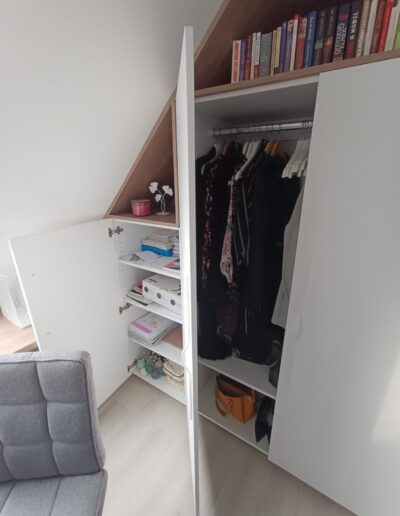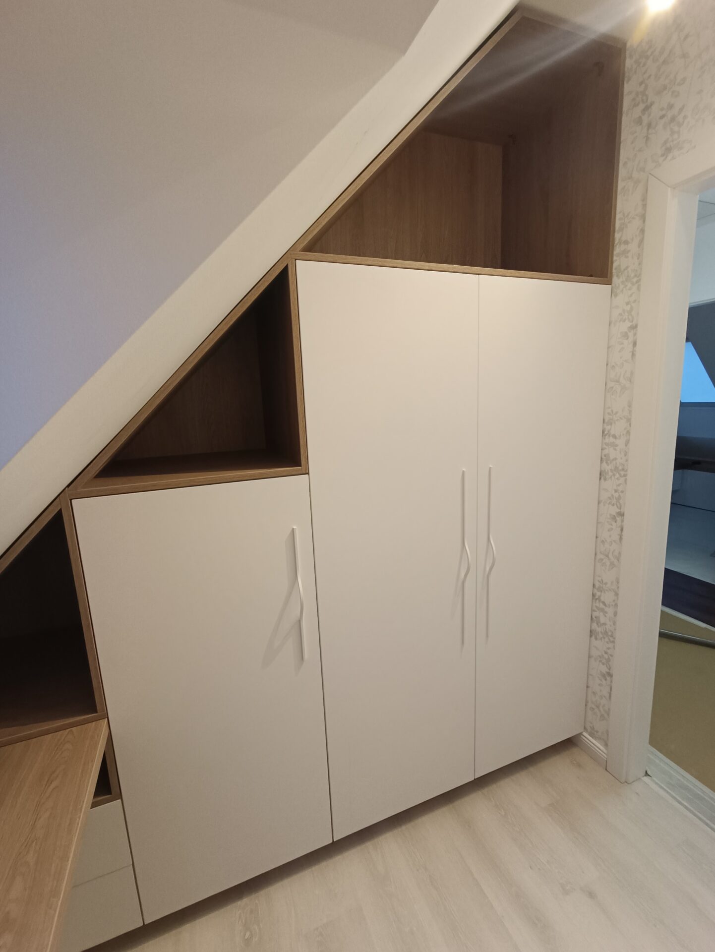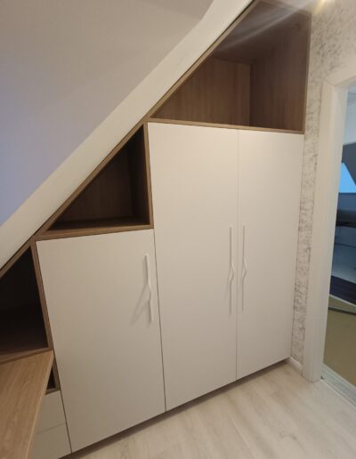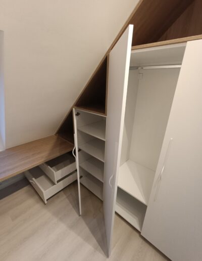 Ha esetleg nem lennének tökéletesen egyenesek vagy derékszögűek a falak, a tervezés során ezeket a paramétereket figyelembe tudjuk venni és kikompenzáljuk ezt a hibát a bútorban, így végsősoron láthatatlanná téve a helyiség adottságbeli hátrányait.