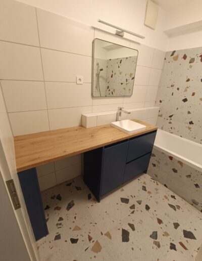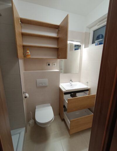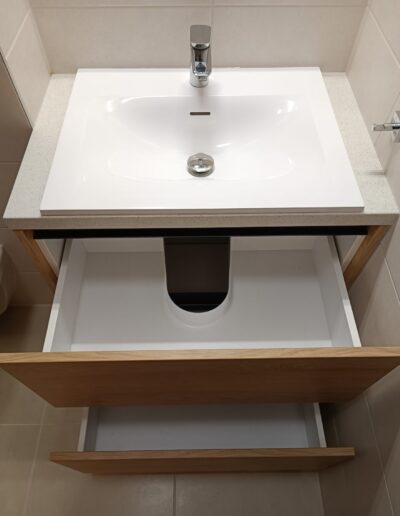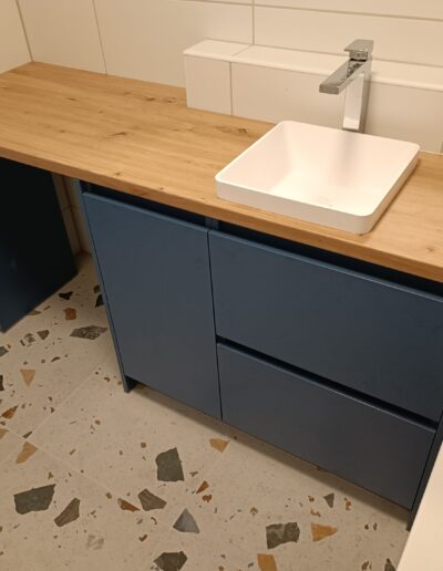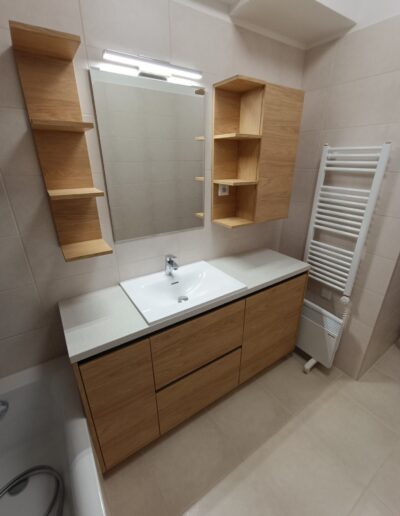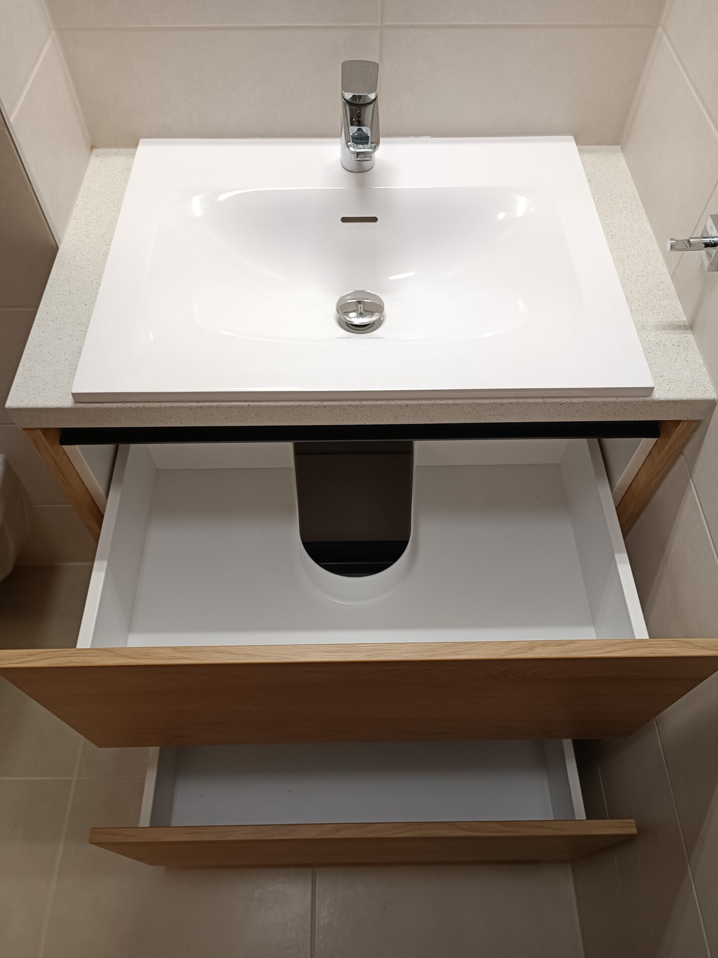A fürdőszobába szánt bútorainkat lebegő módon, lábak nélkül falra szerelten, vagy megemelt lábakkal készítjük. Így bármelyiket is választod, bútorod védve lesz az esetleges padlóra kerülő víztől és a takarítása is egyszerűvé válik.